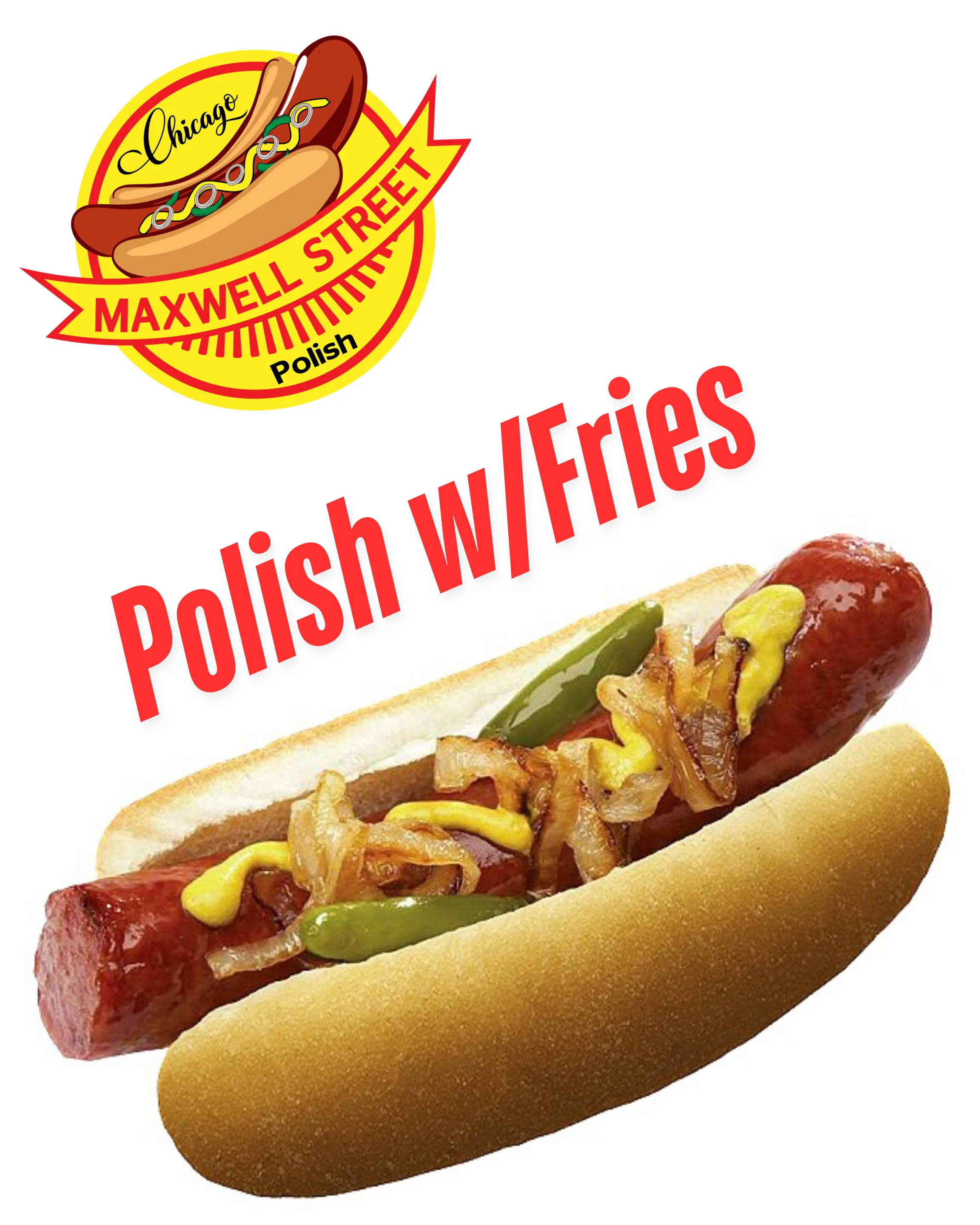 Grilled Chicago Maxwell Street Polish Sausage, Grilled Onions, Sport Peppers, Mustard On Bun With Citi Fries