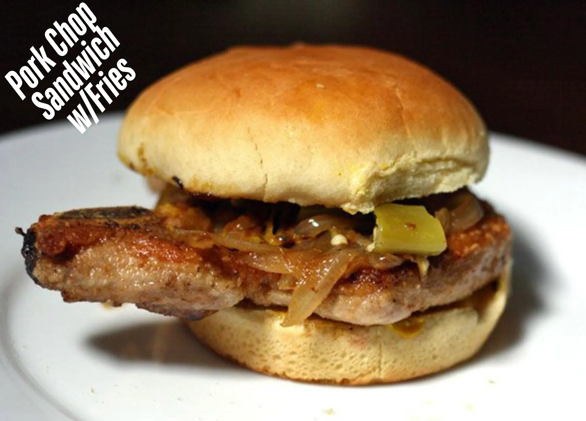 Seasoned Grilled Bone-In Pork Chop, Grilled Onions, Sport Peppers, Mustard On Bun With Citi Fries